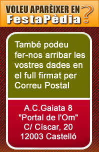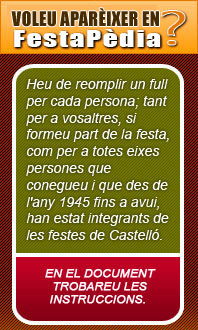 Actualment en Viquipèdia només existeix un article breu, poc més que un esborrany, sobre les festes de la Magdalena. Per la seua banda, la versió en castellà només recull una explicació dels actes del programa de la setmana gran; no compta amb les dades ni d’un sol personatge de la nostra història festera. Davant aquesta situació, l’anomenada FestaPèdia naix com un projecte de documentació sobre les figures que han estat protagonistes en les festes de la Magdalena, des de 1945 fins a l’actualitat. FestaPèdia no vol ser simplement un projecte relacionat amb la història castellonenca contemporània, sinó que es presenta com un projecte pioner, de referència per a unes altres festes. Per tant, des de la perspectiva local, ens presentem amb un model de documentació de la memòria que té una aplicació universal. Voldríem creure que amb la creació de FestaPèdia les Festes de la Magdalena seran les primeres i millor documentades. |