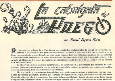 Des de la seua creació al 1945 per En Manuel Segarra Ribés, la "Cavalcada del Pregó" és una desfilada que cada tercer dissabte de Quaresma anuncia l´inici de les festes fundacionals de la ciutat de Castelló.