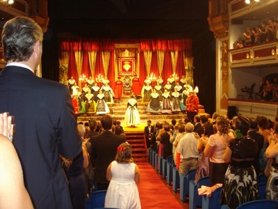 Va tindre lloc en el Teatre Principal de Castelló, el nomenament oficial i imposició de bandes a la Reina de les Festes de Castelló 2011 i la seua Cort d´Honor. Tal com estava previst, esperaven a la comitiva les Corts d´Honor de les Reines de les Festes 2010, Mari Paz Làzaro Espadas i Ana Frías Llorens, també esperaven l´arribada, la Reina Infantil 2011, Maria Badenas, junt amb les seues Dames de la Ciutat, i la Bellea del Foc d´Alacant, Mari Ángeles Guijarro i la Fallera Major de València, Mª Pilar Giménez Santamarina.Durant el recorregut, es van disparar carcasses, fins a l´arribada de la Reina al Teatre Principal, on es va disparar un remat pirotècnic. A poc a poc, el nombrós públic assistent va anar ocupant les seues butaques, i puntualment a les 20:30 hores va pujar la presentadora de l´acte, que per a esta emotiva ocasió va ser Amparo Pitarch Segura.